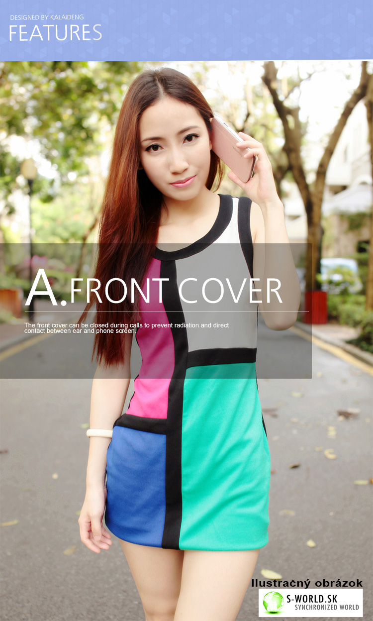 - predná časť môže byť počas telefonovania zavretá – bráni tak žiareniu a priamemu kontaktu medzi uchom a obrazovkou