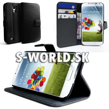 Elegantné kožené púzdro s bočným otváraním pre Samsung Galaxy S4 so záložkami na kreditné karty alebo vizitky.