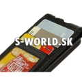 Kožený obal má aj priehradky na odkladanie kreditných kariet alebo dokladov.