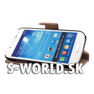 Elegantné kožené púzdro s bočným otváraním pre Samsung Galaxy S IV Mini so záložkami na kreditné karty alebo vizitky.