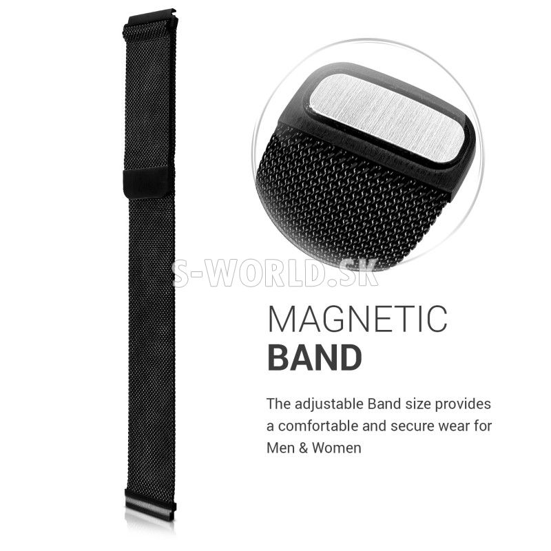 Nastaviteľná veľkosť: Vďaka magnetickej spone sa dá veľkosť jednoducho prispôsobiť podľa potreby, až kým Vám remienok sadne ako uliaty. Rozmedzie: 14 - 25 cm