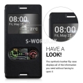 S týmto koženým obalom si môžete skontrolovať stav Vášho telefónu alebo prijať hovor bez nutnosti otvárať puzdro vďaka výrezu pre displej. Taktiež budete môcť telefonovať aj so zatvoreným puzdrom.