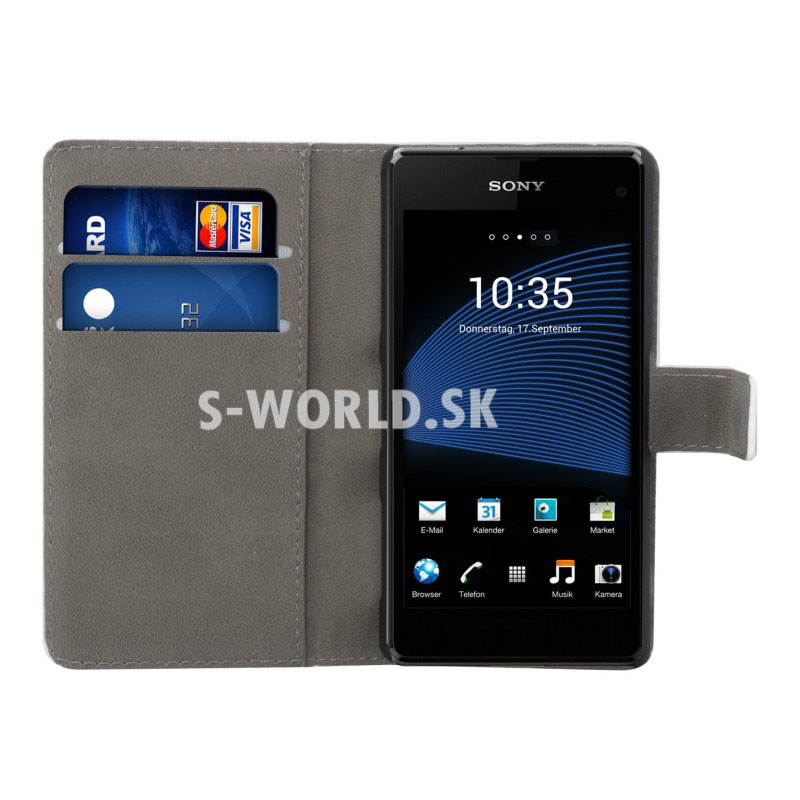 Elegantné kožené puzdro s bočným otváraním pre Sony Xperia Z1 Compact (D5503) so záložkami na kreditné karty alebo vizitky.