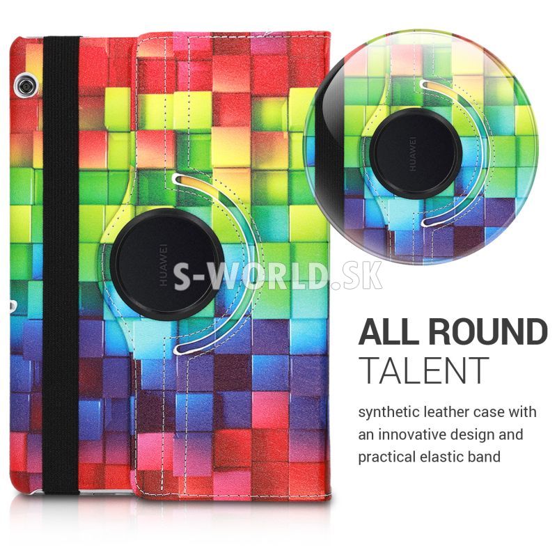 Vzorovaný koženkový obal, ktorý spája funkčnosť a dizajn. Je vyrobený z odolnej umelej kože s mäkkou vnútornou výstelkou, ktorá pomáha chrániť Váš tablet. Puzdro sa uzatvára pomocou elastického popruhu. Toto koženkové puzdro umožňuje umiestniť Huawei MediaPad T5 10 buď vertikálne alebo horizontálne pri čítaní, hraní hier, prezeraní fotografií či videí, surfovaní na internete a pod.