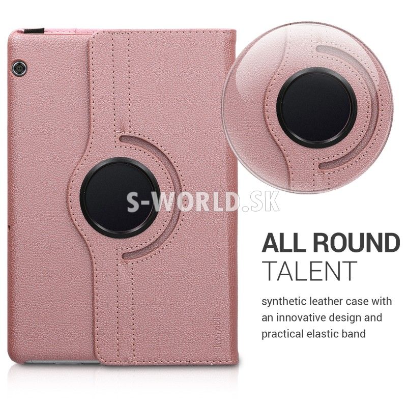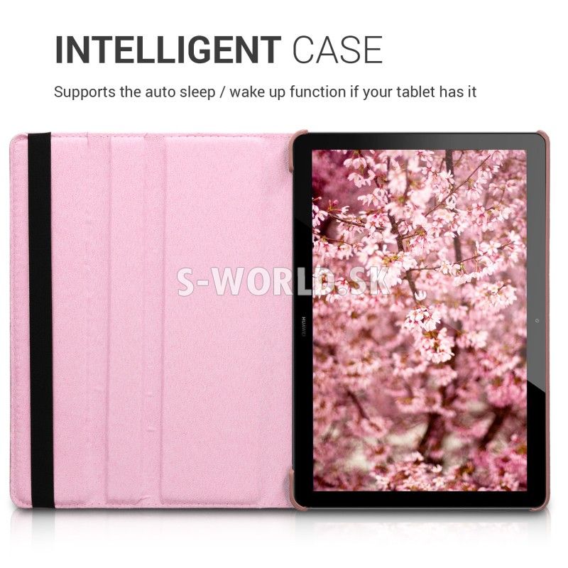 Koženkový módny obal, ktorý spája funkčnosť a dizajn. Je vyrobený z odolnej umelej kože s mäkkou vnútornou výstelkou, ktorá pomáha chrániť Váš tablet. Puzdro sa uzatvára pomocou elastického popruhu. Toto koženkové puzdro umožňuje umiestniť Huawei MediaPad T5 10 buď vertikálne alebo horizontálne pri čítaní, hraní hier, prezeraní fotografií či videí, surfovaní na internete a pod.
