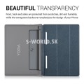Obal je vyrobený z odolnej polyuretánovej kože s vnútornou časťou z mikrovlákna, aby ostal Váš displej bez škrabancov. Zadná časť je vyrobená z priehľadného polykarbonátového plastu.