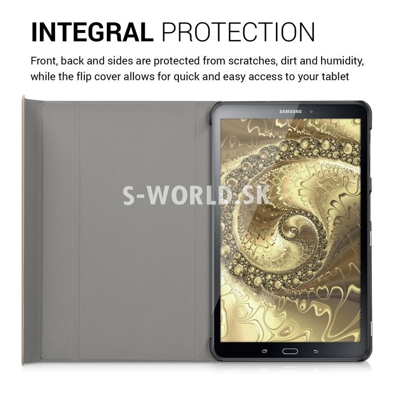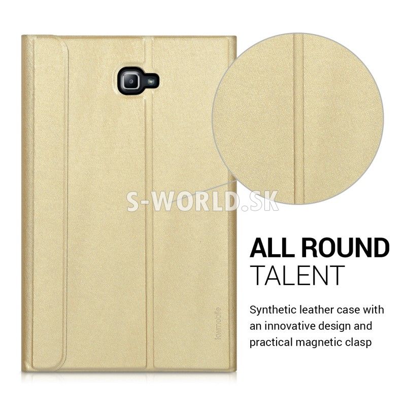 Ochranné puzdro s inovatívnym spôsobom skladania a magnetickým uzatváraním pre Samsung Galaxy Tab A 10.1 (2016) ponúka vynikajúcu ochranu proti otrasom a nárazom. Štýlové puzdro je vyrobené z polyuretánovej kože a poskytuje Vášmu tabletu komplexnú ochranu zatiaľ čo vnútorná časť vyrobená z mikrovlákna poskytuje ochranu pre displej.