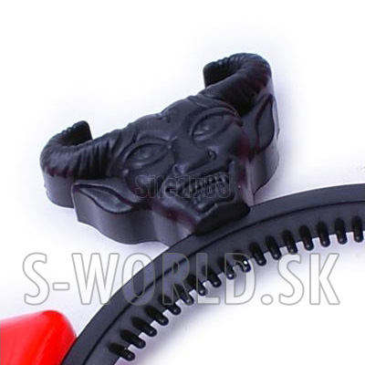 Medzi rohami sa nachádza hlava čerta, v ktorej sú umiestnené 4xAG13 batérie a tlačidlo ON/OFF.