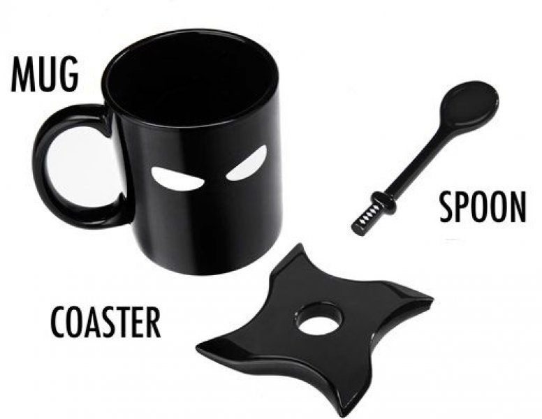 Aj nindžovia potrebujú chvíľku na odpočinok, najlepšie u japonského čaju a so štýlovým hrnčekom! Vy si však môžete dopriať pokojne aj kávu alebo horúcu čokoládu, len si ju nezabudnite zamiešať lyžičkou, ktorá keď je ponorená v hrnčeku, tak vďaka svojmu držadlu vyzerá úplne ako bojový meč.