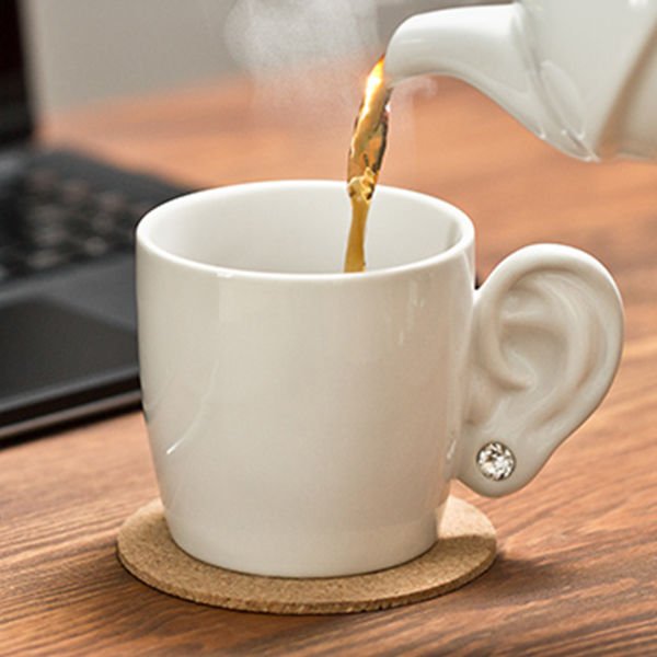 Keď budete piť kávu z tohto hrnčeka, tak budete mať o jedno ucho navyše! Namiesto klasického ucha má totiž ľudské ucho.