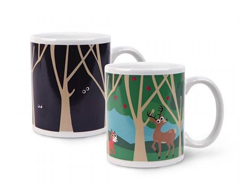 Prichystajte si svoj obľúbený teplý nápoj, nalejte ho do čarovného hrnčeka a pozrite sa ako sa zmení grafika obrázku! V podstate Vám vyrastie obrázok priamo pred očami. Hrnček reaguje na teplo, lebo je maľba vyrobená z termálneho atramentu. Ako sa váš nápoj ochladí, grafika sa zmení späť do pôvodného stavu.