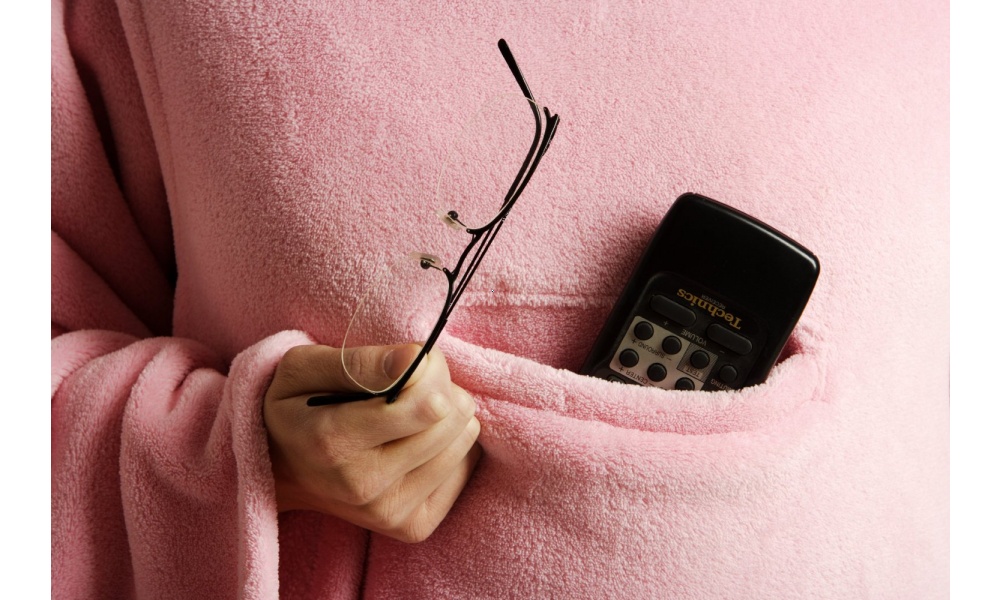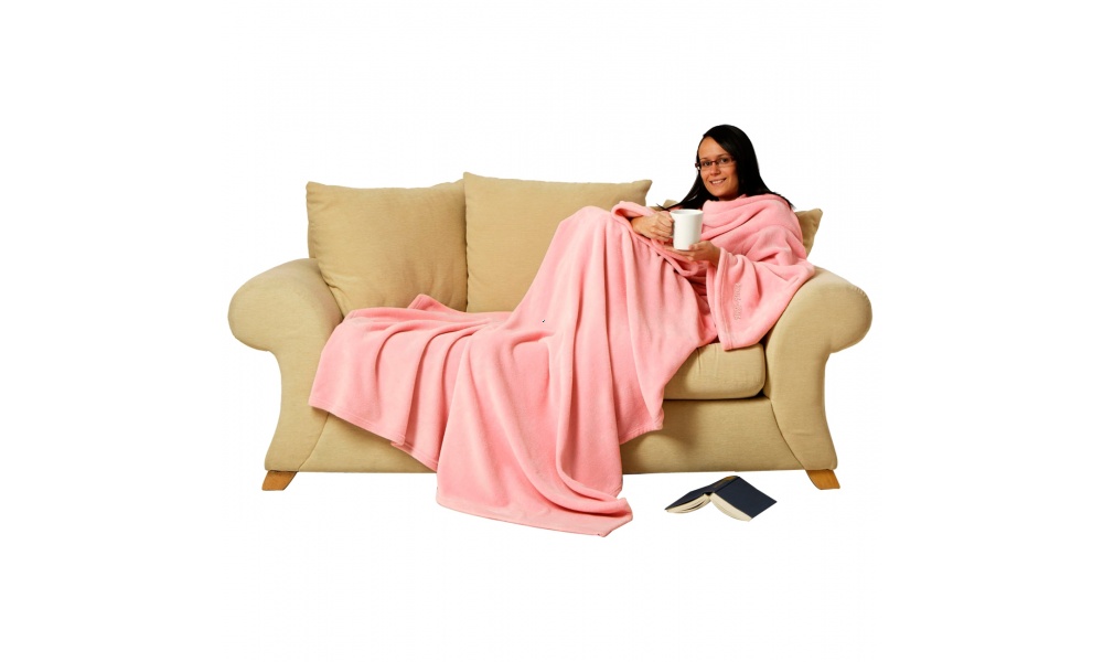 Táto nadrozmerná deka má rukávy a dvojité lemovanie na krku.