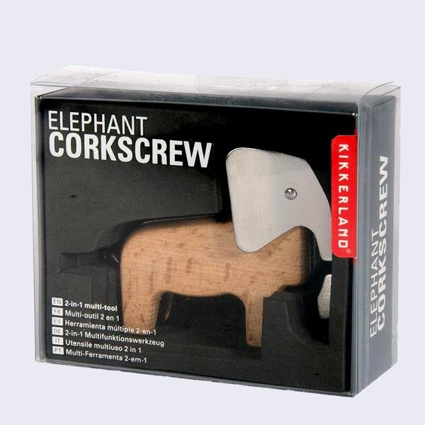 Otvarák s vývrtkou dohromady v krásnom dizajne slona.
