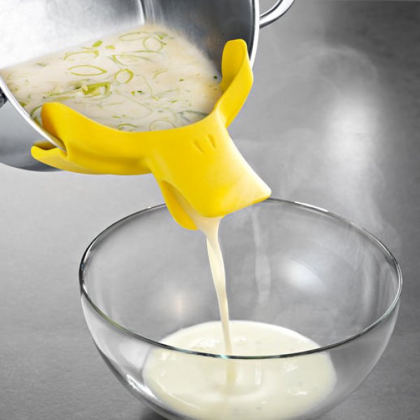Tento silikónový odkvapkávač sadne na väčšinu hrncov a panvíc ako kačka do vody.