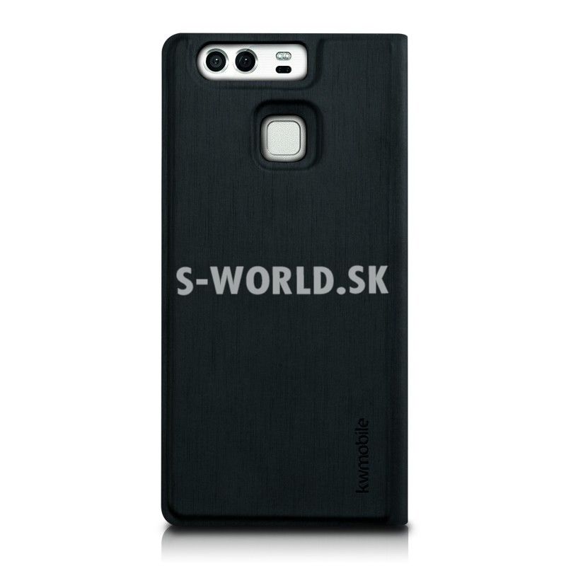 Elegantné kožené puzdro s bočným otváraním pre Huawei P9 so záložkami na kreditné karty alebo vizitky.