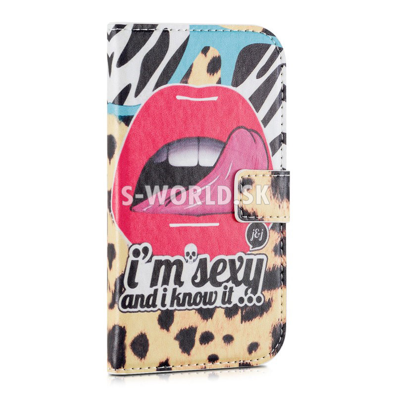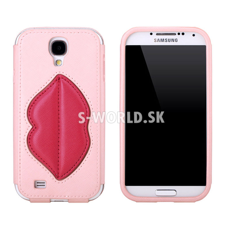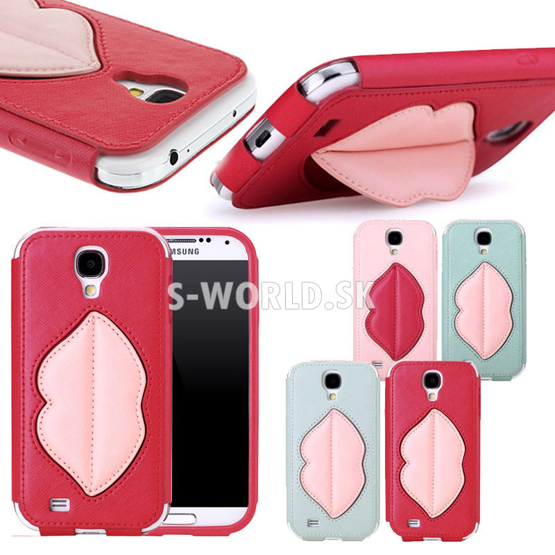 Moderné zasúvacie kožené puzdro s dizajnom "sladkých pier", ktoré slúžia po odklopení ako stojan.