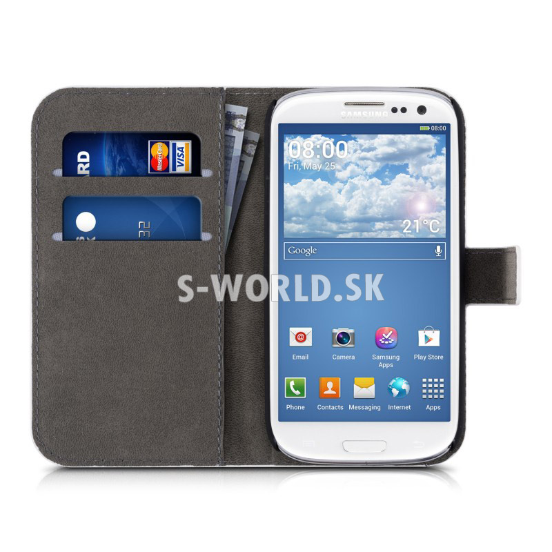Elegantné kožené puzdro s bočným otváraním pre Samsung Galaxy S3 / S3 Neo so záložkami na kreditné karty alebo vizitky.