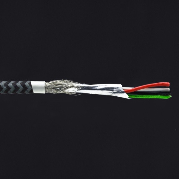 Textilný dátový kábel USB typ C s lomeným konektorom pre pohodlné nabíjanie a prenos dát.